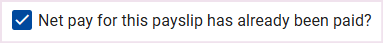 To exclude an employee who has already been paid from the Salary Payment File, enable the "Net pay for this payslip has already been paid" checkbox under the Payslip Summary section on the Edit Payslip screen.