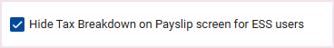 Activate the company setting below to prevent ESS users from viewing their tax breakdown on the Payslips screen.