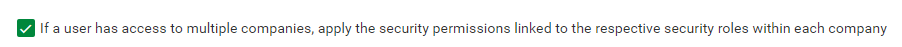 Enable the following checkbox on the Security Settings screen in each Company to apply each linked security role to its respective company.