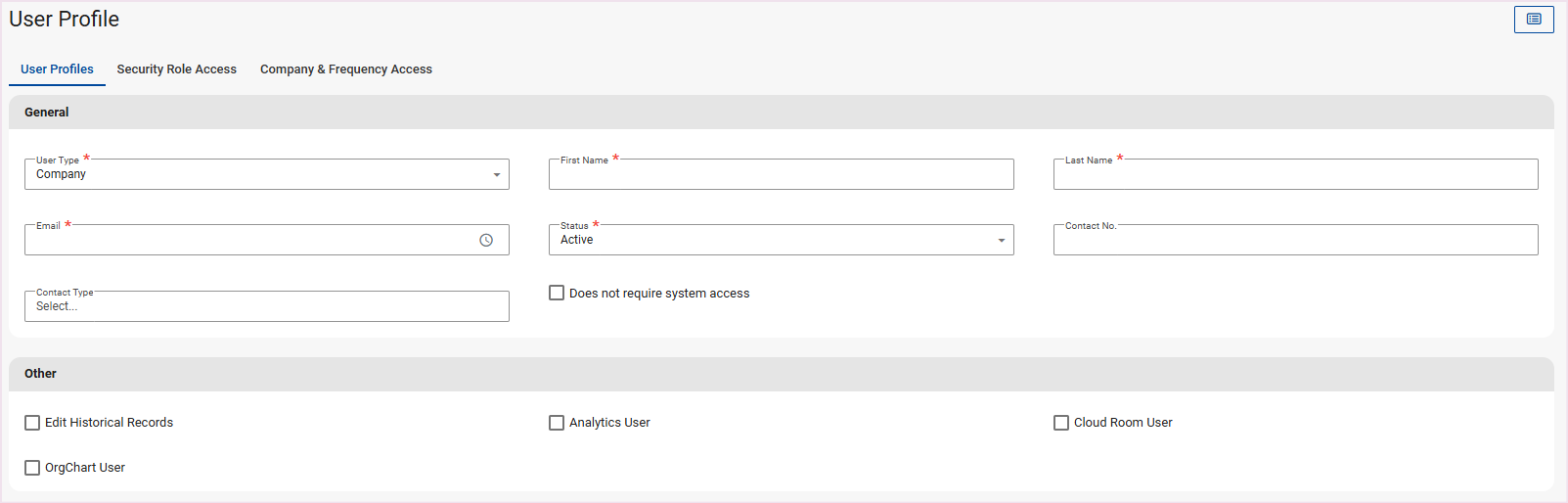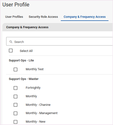 Step 4: Add the relevant company and frequency access on the Company & Frequency Access tab.