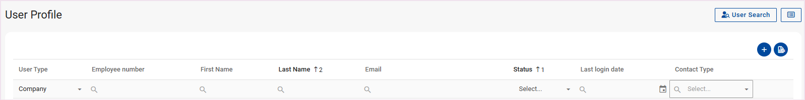 Step 1: Ensure that "Company" is selected from the dropdown list and select the "+" button to add a new user profile.