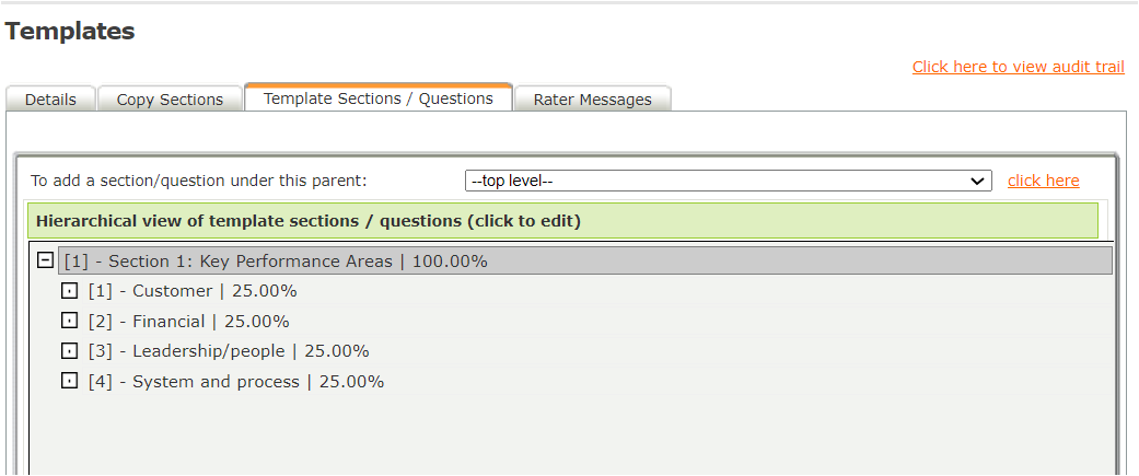 Access the relevant template and navigate to the "Template Section/Questions" tab.