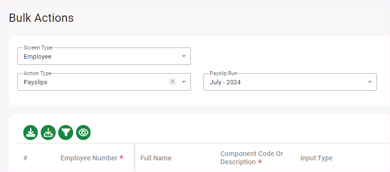 Step 2: Once the required once off components have been created, they can be linked to an employee on their Edit payslip screen or collectively on the Bulk Actions screen.