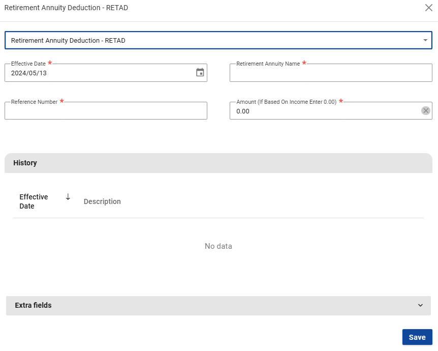 Step 1: Search and add the Retirement Annuity Deduction component and select "Save".
