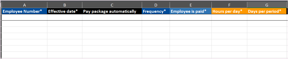 Step 3: Complete the MS Excel template with the employee's new Pay Rate Details.