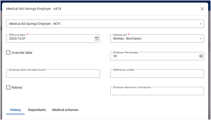 Medical Aid Savings is a component that forms part of a number of medical aid options. The Medical Aid Savings contains a percentage of the annual medical scheme contribution which is held in a separate account and used to pay for day to day medical expenses. The component has to be created on company level before it can be added to an employee.