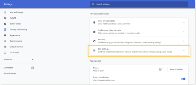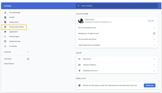 2. Click Privacy and security in the left-side navigation menu.