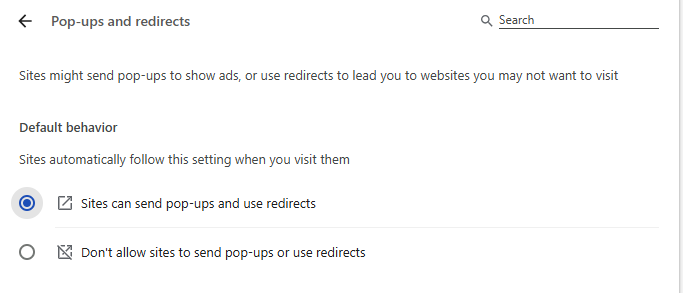 5. Select the first option to enable pop-ups.