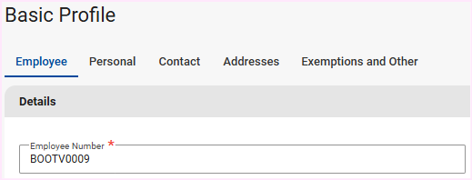 Step 2: Update the Employee Number field under the Employee tab on the Basic Profile screen.