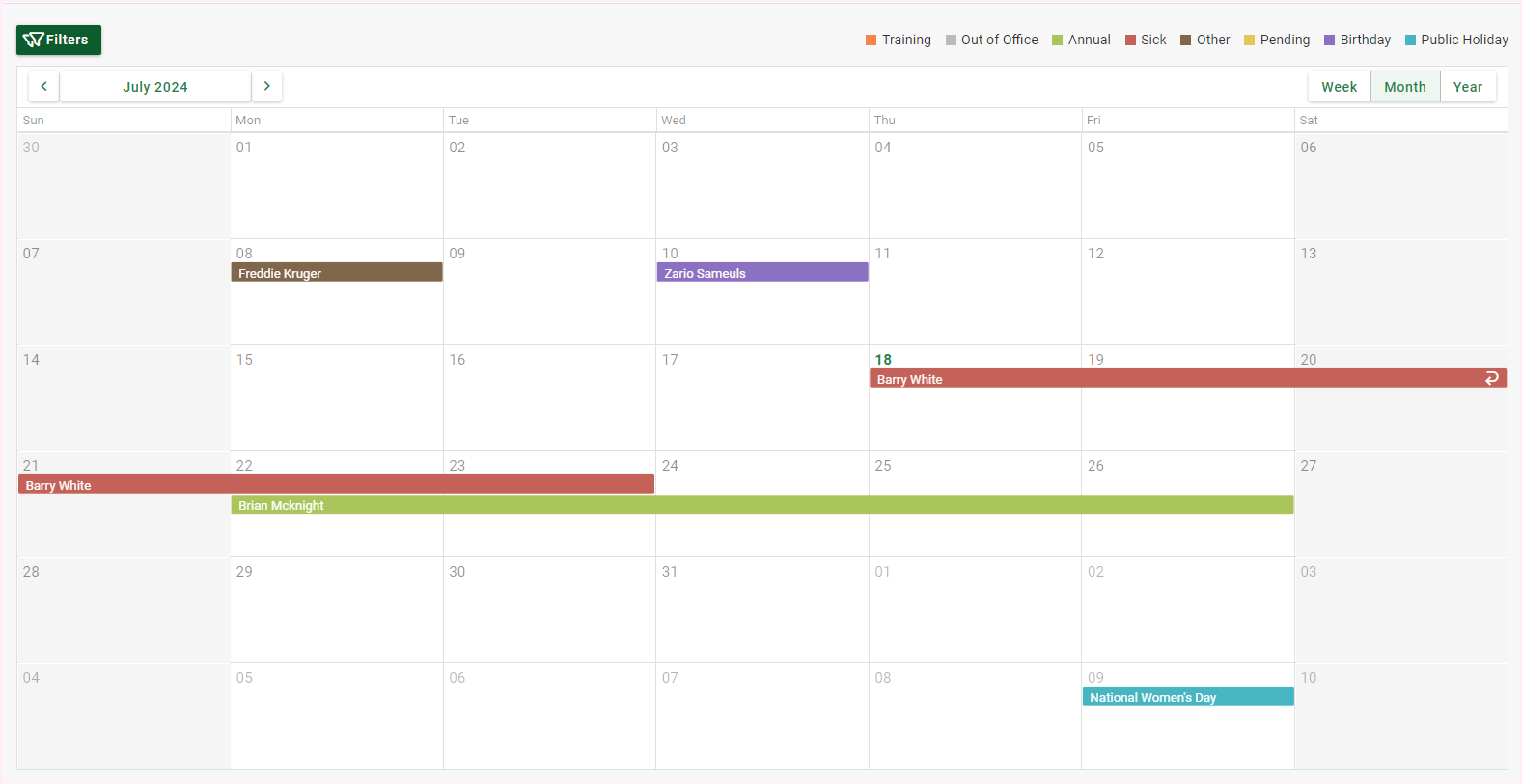 Step 3: All of the employees' leave for the selected month will be displayed.