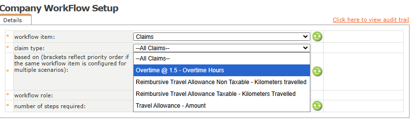 This feature is available on the Premier and Master payroll edition Yes, the workflow configuration screen allows users to configure claim workflows for specific claim items. The system allows workflow paths to be created, based on workflow role, ...