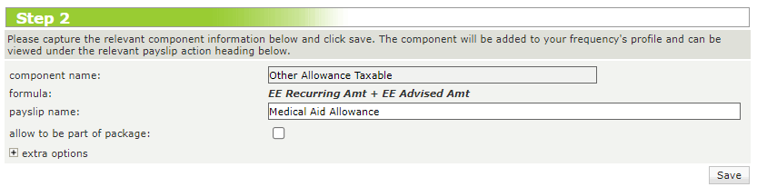 A Medical Aid Allowance component can be created using the Other Allowance Taxable (3713) component as a base component.