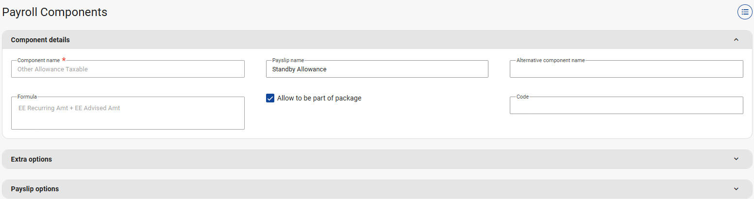 A Standby Allowance component can be created using the Other Allowance Taxable (3713) component as a base component.