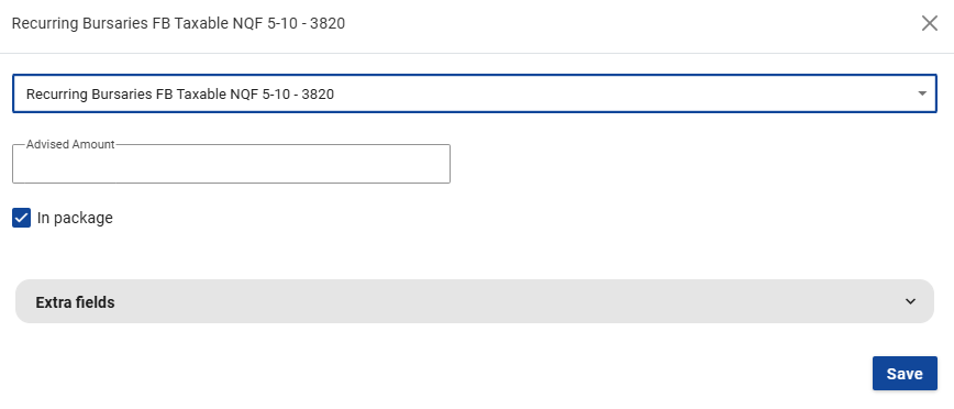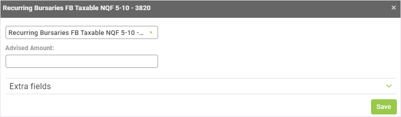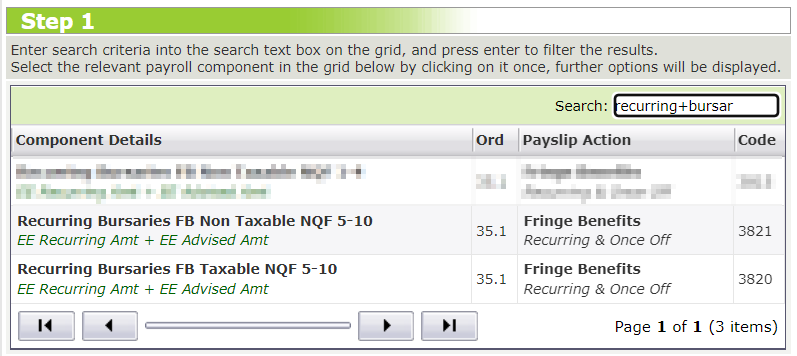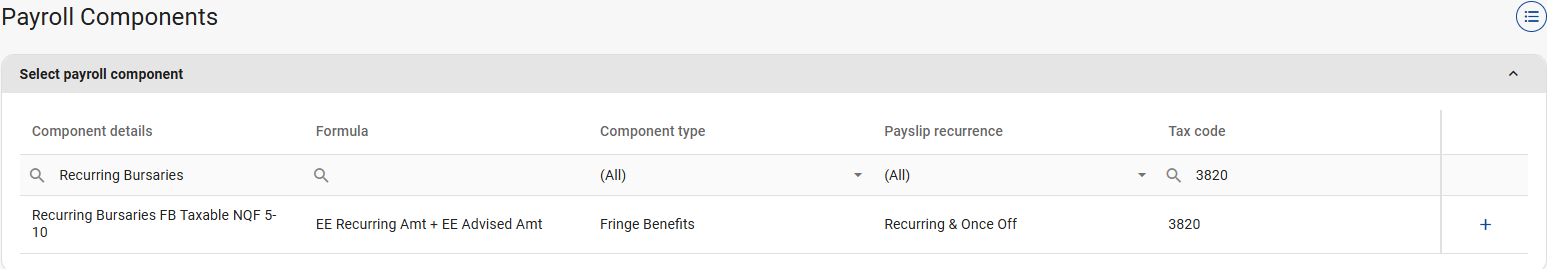 The Taxable Recurring Bursary component has to be configured on company level before it can be linked to an employee.