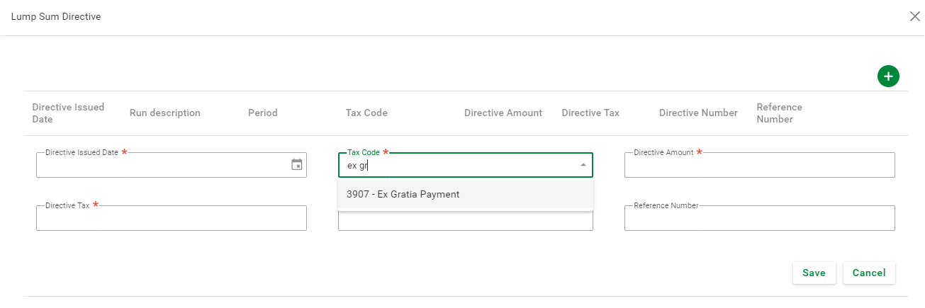 Navigate > Employee > Payroll Processing > Edit Payslip > Other Actions > Lump Sum Directive