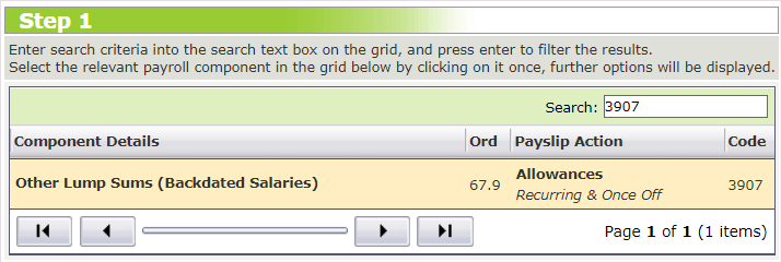 Step 2: Select the component on the Lump Sum Directive window, under Other Actions on the employee's Edit Payslip screen.