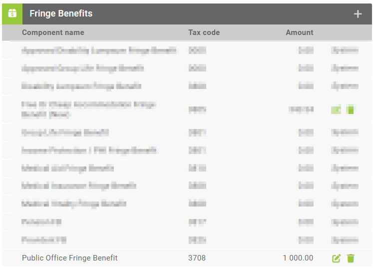 The Public Office Allowance and Public Office Fringe Benefit components have to be configured on company level before they can be linked to an employee.