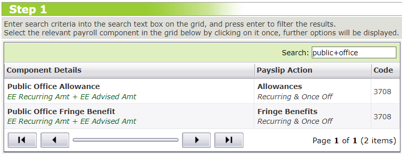 Step 1: Add the "Public Office Allowance" and "Public Office Fringe Benefit" components.