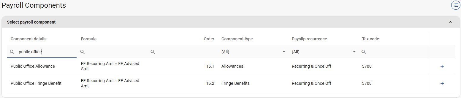 Add the "Public Office Allowance" and "Public Office Fringe Benefit" components.