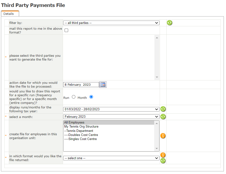 Step 2: Generate the Third Party Payments file according to your specified parameters.