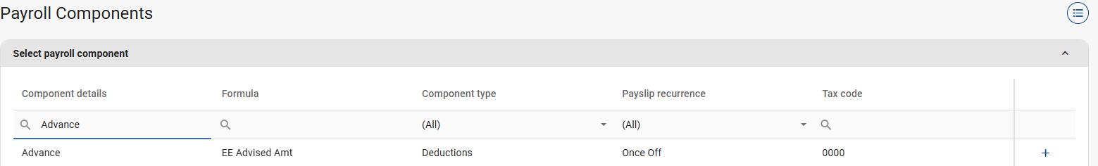 The Advance component needs to be configured on company level before it can be linked to employee profiles.