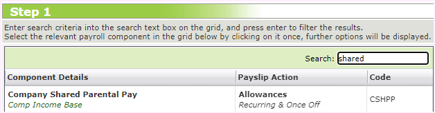 Step 1: Search for and create the Company Shared Parental Pay component.