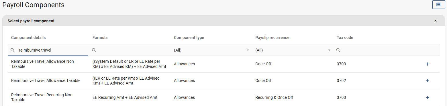 When to use the Reimbursive Travel Allowance Non-Taxable component (3703): This code is only applicable where the reimbursement rate used by the employer does not exceed the prescribed rate, and the employee does not receive any other form of compensation for travel; and in respect of the full value of the reimbursement.