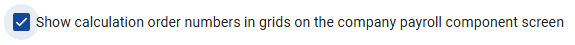 Enable the company setting, "Show calculation order numbers in grids on the company payroll component screen" on the Calculation Settings screen, for the component order to display on the Payroll Components screen.