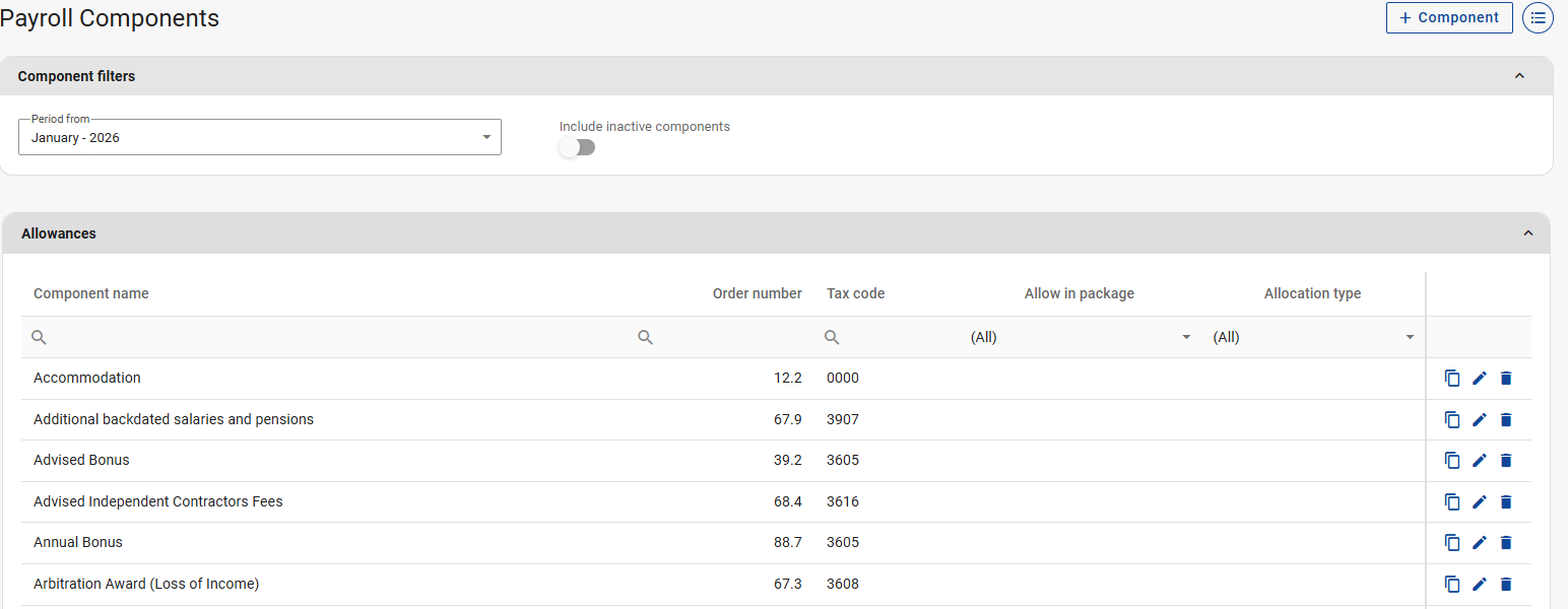 Navigate > Configuration > Payroll > Payroll Config > Payroll Components