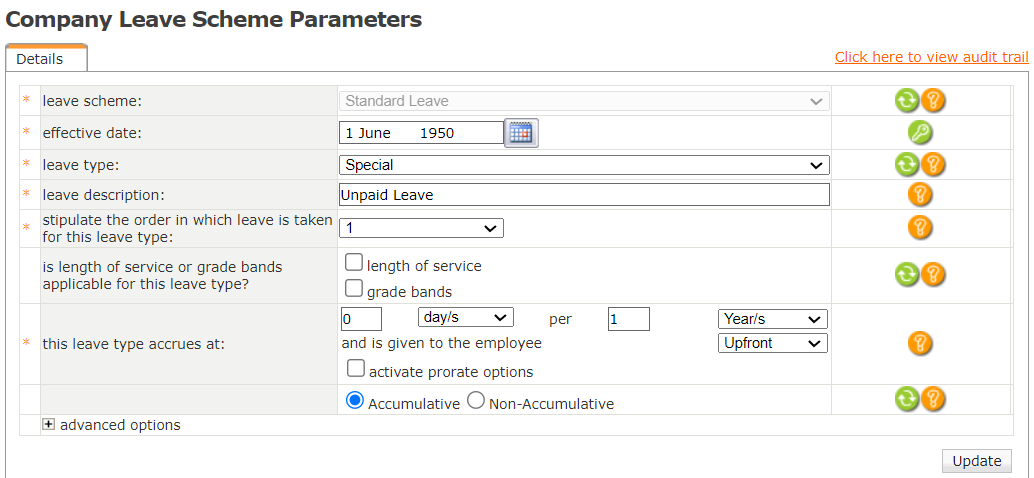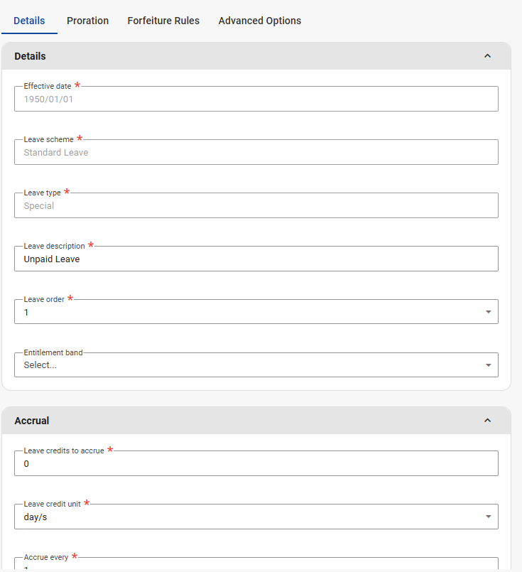 Navigate > Config > Human Resources > Leave Administration > Leave Scheme Parameters