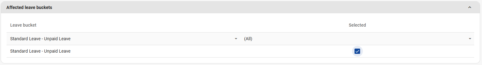 After the income base is defined, select the Unpaid Leave parameter under "affected leave buckets".