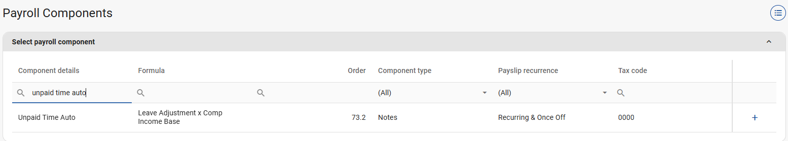 Make use of the following steps to configure the Unpaid Time component so that it automatically reflects on the payslip when employees submit an Unpaid Leave application.