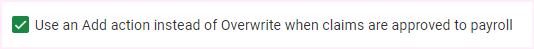 By default, if an employee submits a claim and it is approved and committed to the Edit Payslip screen, the system will overwrite any previously approved claims.