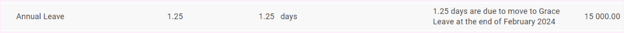 The system will apply the formula defined in Step 1 (Basic Pay - Other Allowance Taxable = R 30000.00 - R 15000.00) on the employee's Leave Balances screen.