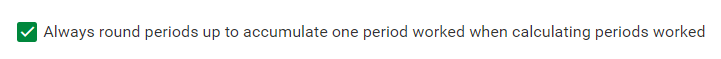 up to accumulate one period worked when calculating periods worked" checkbox under the General Calculations section on the General Settings screen.