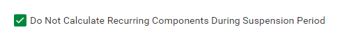 This feature is available on all PaySpace editions To prevent an employee's recurring components from calculating during their suspension period, enable the "Do Not Calculate Recurring Components During Suspension Period:" checkbox on the applicable ...