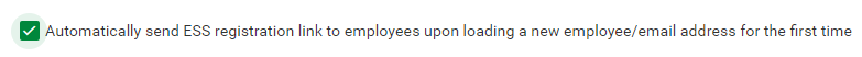 Enable the "Automatically send ESS registration link to employees upon loading a new employee/email address for the first time" checkbox under the Employee Settings section on the General Settings screen.