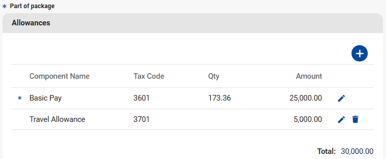When the Travel Allowance component is linked to an employee's Edit Payslip or Recurring Payroll Components screen, 80% of the amount will be taxable by default.