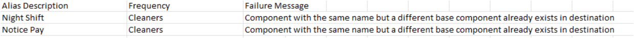 The validation errors link will open an excel sheet explaining why the components could not be copied over.
