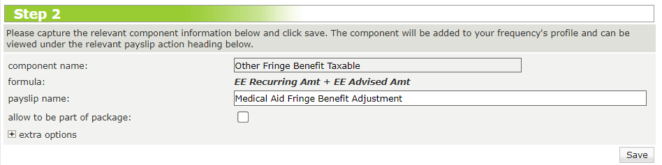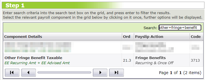 Step 1: Create the Other Fringe Benefit Taxable component.