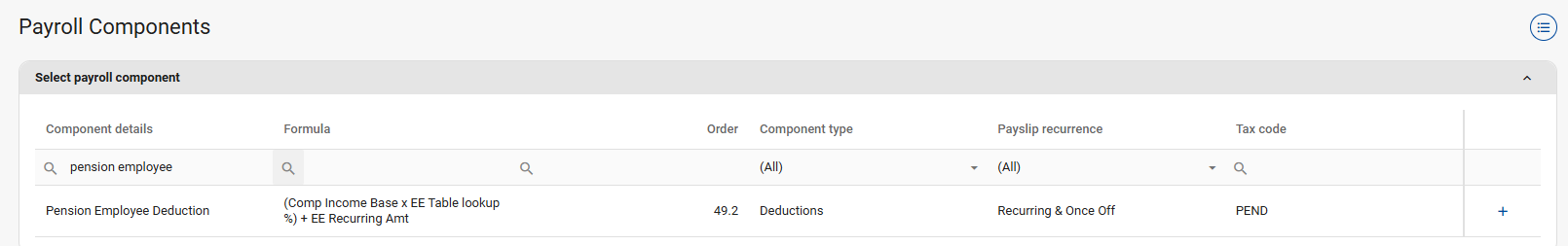 Navigate > Config > Payroll > Payroll Config > Payroll Components