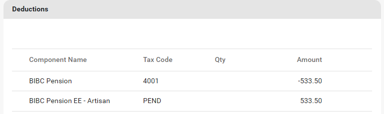 Step 3: Process the YTD value on the correct Pension Deduction component on tax code PEND.