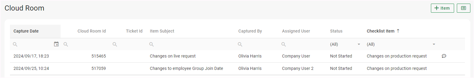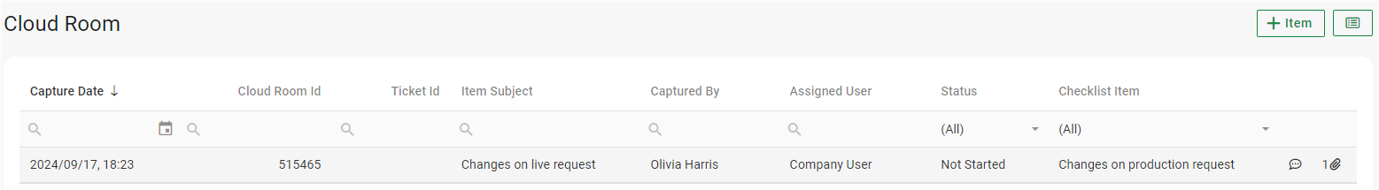 Both the Parent and Child Item will then reflect on the Cloud Room screen.