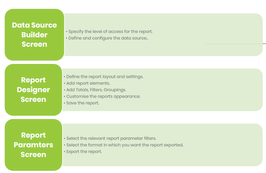 This feature is available on the Master payroll edition. The report writer reads directly from our current API tables. This means that all screens that have an API endpoint can be reported on in Report writer. As these screens are converted to ...