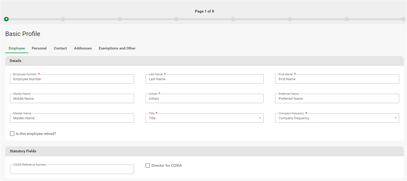 A dummy employee record can be created by following and completing the workflow on the Add New Employee screen.