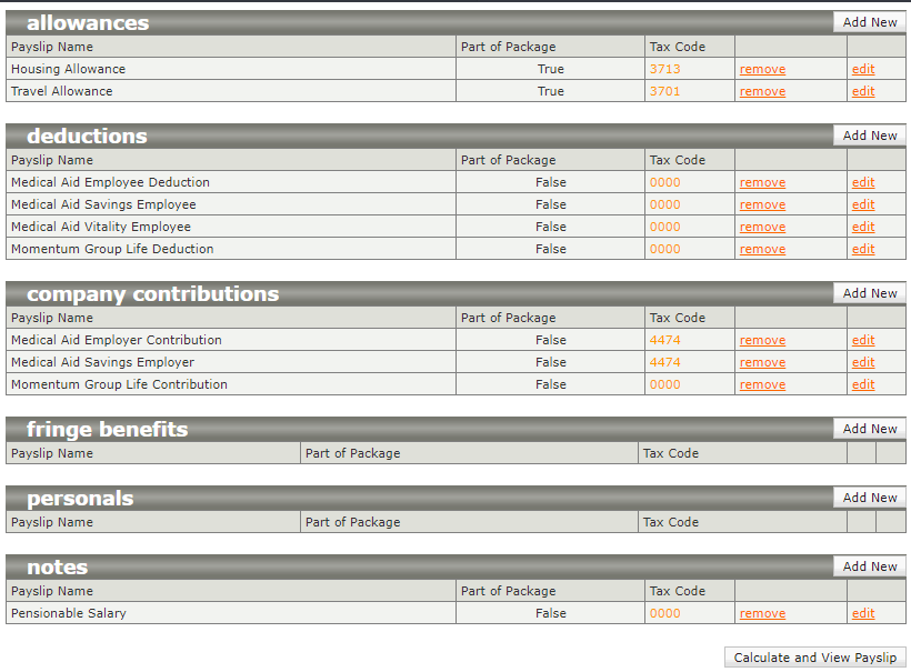 Note! The system has been designed so that once-off components will not be able to be added on the mock payslip.