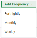 A new frequency (Fortnightly, Monthly or Weekly) can be created on the Pay Frequencies screen by clicking on the "Add Frequency" dropdown button and selecting the type of frequency required.