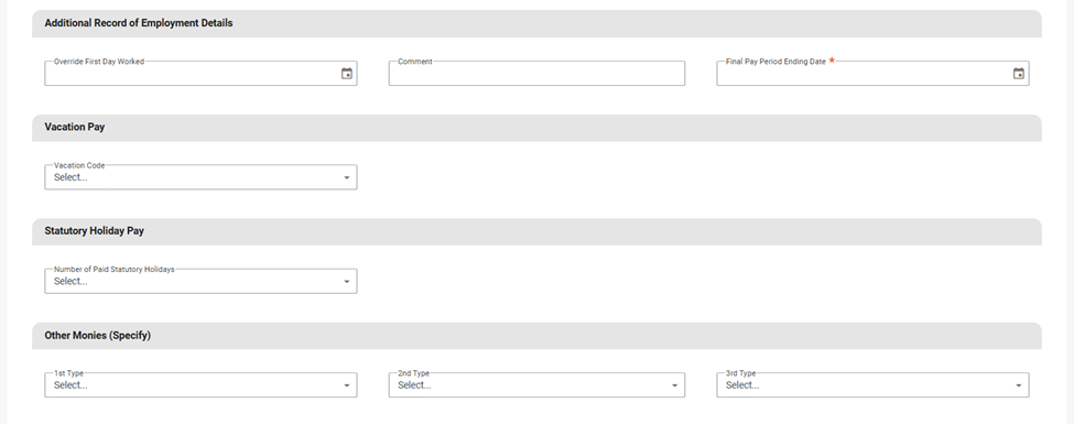 A Record of Employment (ROE) is required by Service Canada when an employee is placed on leave, resigns, or is terminated for any reason.