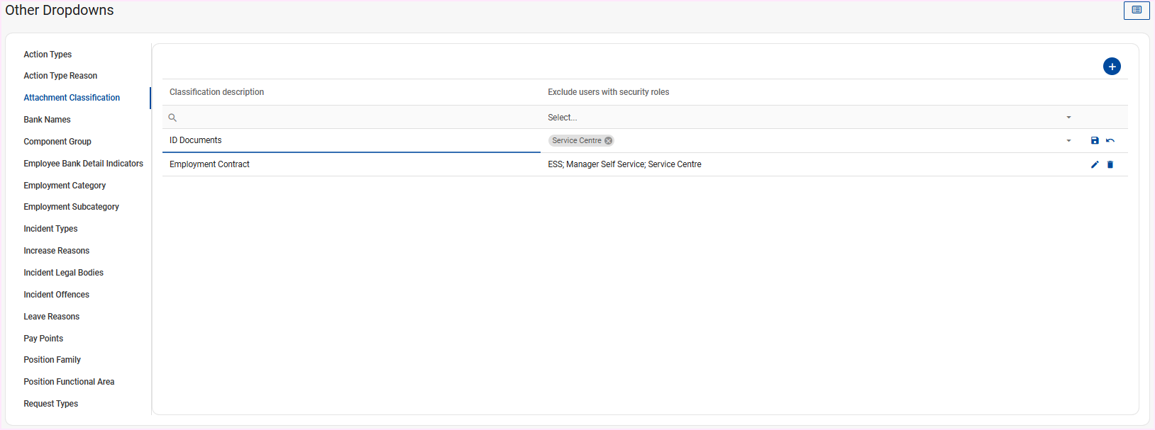 Navigate > Config > Basic Settings > Dropdown Management > Other Dropdowns > Attachment Classification