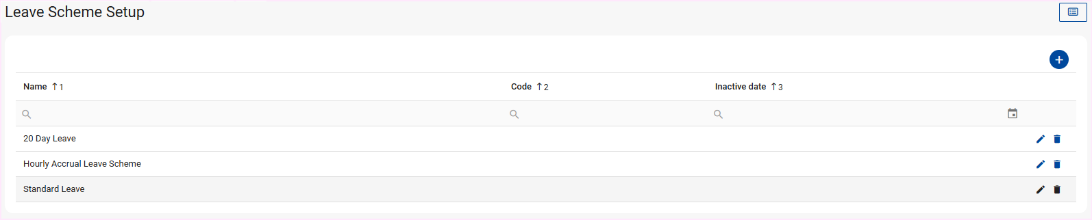 Navigate > Config > Human Resources > Leave Administration > Leave Scheme Setup
